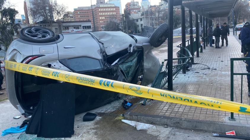 Conductor en estado de ebriedad vuelca auto en paradero de Providencia